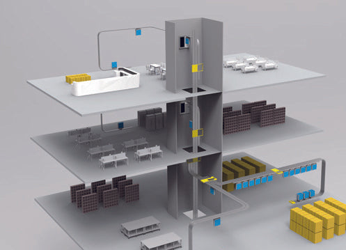 Designul flexibil și estetica ridicată permit integrarea sistemului în clădire. Suspendat de tavan, sistemul este potrivit atât pentru clădirile noi, cât și pentru cele existente, creând un spațiu util. Stațiile sistemului sunt amplasate în apropierea locurilor de muncă din departamente, pentru a permite o recepție ușoară a materialelor.
