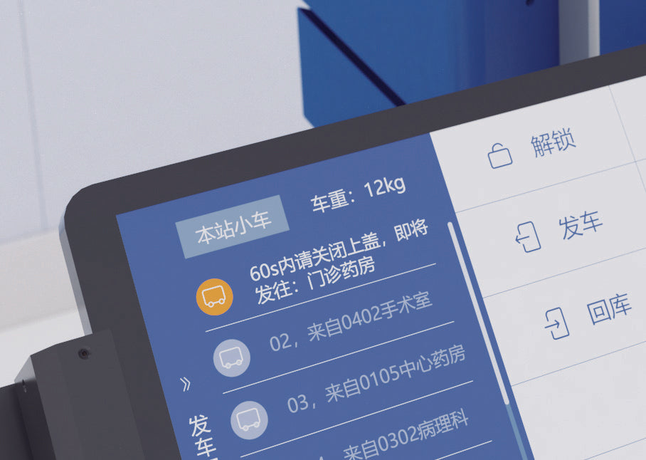 Sarcina utilă maximă de 20 kg (MultiLift S20) sau 50 kg (MultiLift S50) permite transportul unei game largi de materiale spitalicești. Ecranul tactil integrat de 4,3 inchi poate fi utilizat pentru a controla numeroase funcții, cum ar fi eliberarea capacului, parolele și dezinfecția UV (opțional).